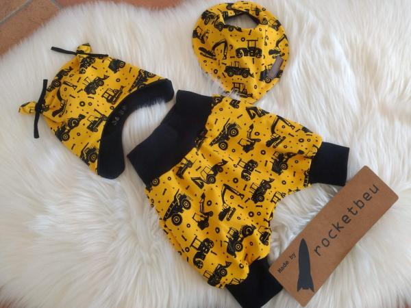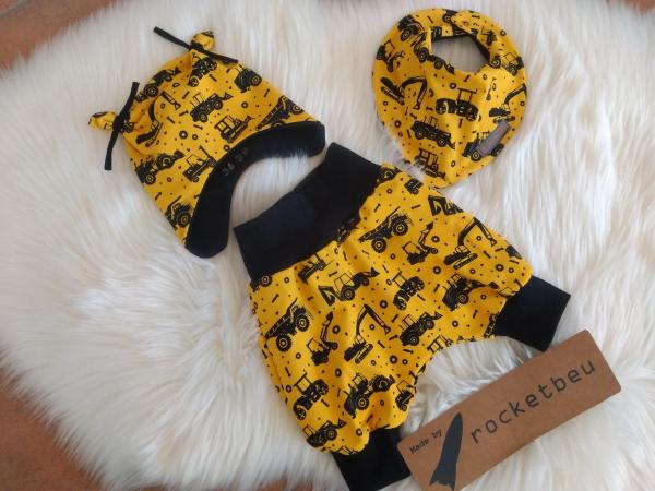 Set "Baustelle" bestehend aus einer Hose , einer Ohrenmütze und einem Tuch in Gr. 56.