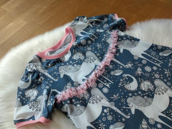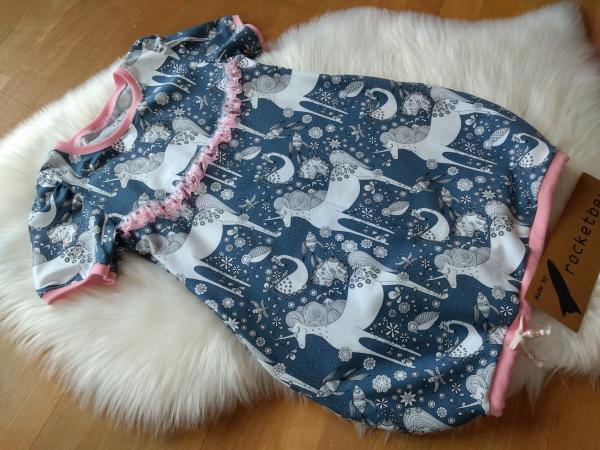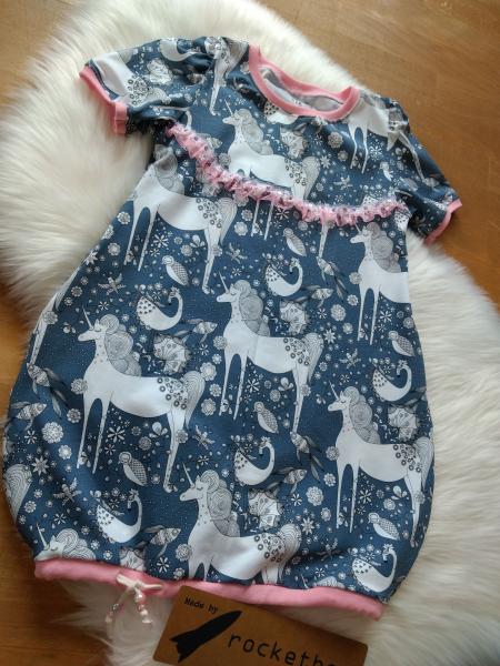 Eine tolle Ballontunika mit kurzen Armen. Diese tolle Tunika ist ein Begleiter für das ganze Jahr. Im Herbst und Winter kann man gut ein Langarmshirt unter ziehen und somit ist es das ganze Jahr tragbar. Auch wächst es gut mit. Am Anfang ist es ein wenig Kleid, später dann eine Tunika.