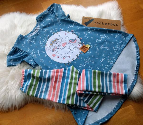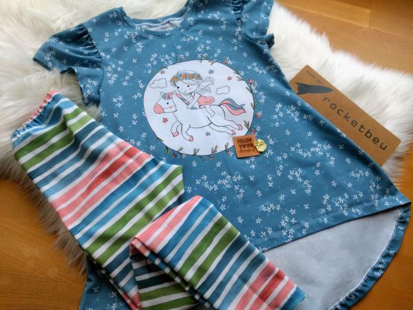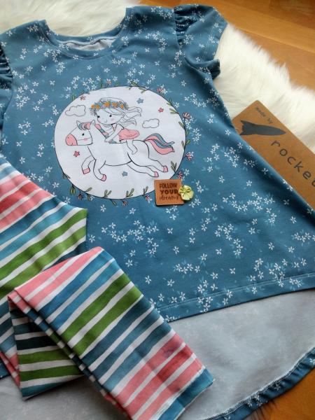 Eine tolle Tunika mit kurzen Armen. Diese tolle Tunika ist ein Begleiter für das ganze Jahr. Im Herbst und Winter kann man gut ein Langarmshirt unter ziehen und somit ist es das ganze Jahr tragbar. Auch wächst sie lange gut mit. Hier im Set bekommt ihr gleich die passende Leggings dazu.