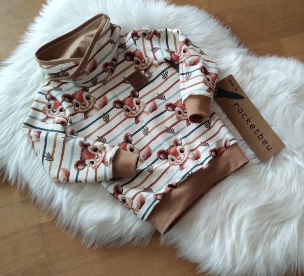 Durch die bequeme Weite und der etwas längeren Schnittform, wächst der Hoodie noch etwas mit, was die Mamis ganz besonders freut.