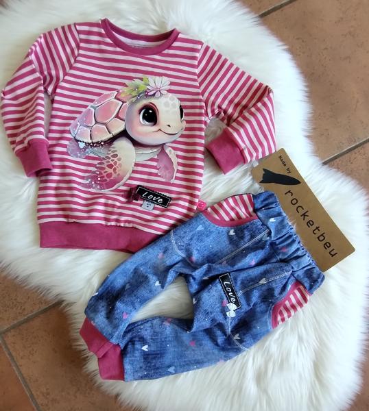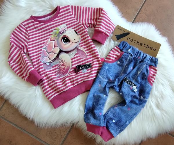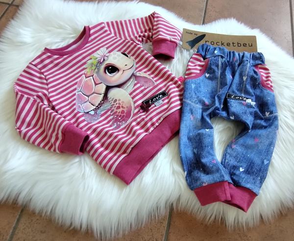 Wunderschönes Set aus Jersey Pulli mit Bügelmotiv und Pumphose mit echten Taschen aus Jerseystoff.