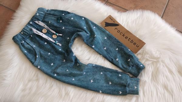 Tolle Hose für die Kleinsten, bequem, weit und ohne Teilung, damit die Motive der Stoffe besser zur Geltung kommen. Aber mit echten Taschen, zum verstauen der wichtigen gesammelten Dinge.