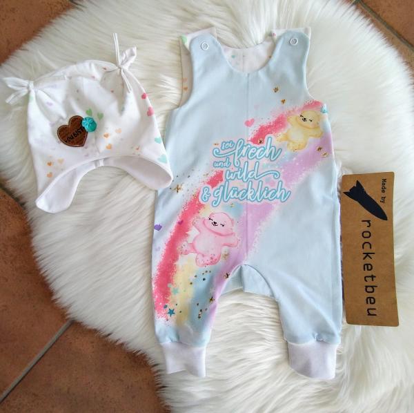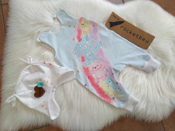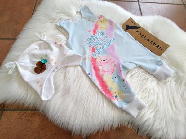 Wunderschönes Set aus Jersey Strampler mit süßem Bärchen-Motiv und passender Ohrenmützchen KU 40-42.