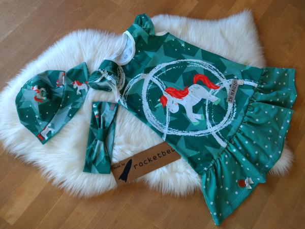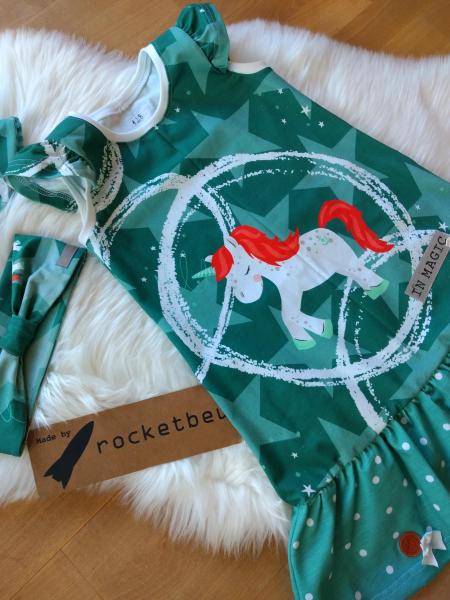 Ein tolles Trägerkleid mit Drehrock und Flügelärmelchen. Dieses tolle Kleid ist ein Begleiter für das ganze Jahr. Im Herbst und Winter kann man gut ein Langarmshirt unter ziehen und somit ist es das ganze Jahr tragbar. Auch wächst es gut mit. Am Anfang ist es ein Kleid, später dann eine Tunika.