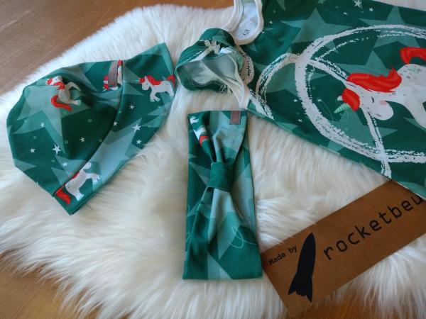 Dazu gibt es einen Sommerhut aus Jersey und ein Haarband ebenfalls aus Jersey.