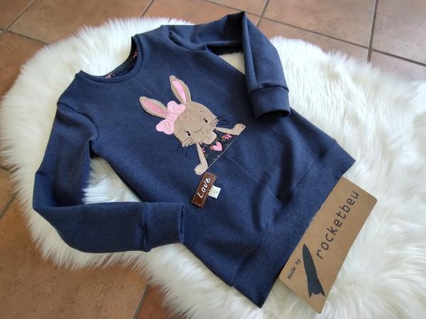 Wunderschöner Pulli mit Hasen-Applikation aus weichem Ganzjahressweatstoff. Der perfekte Begleiter für die Wintertage, da er innen leicht angeraut und kuschelig ist.
