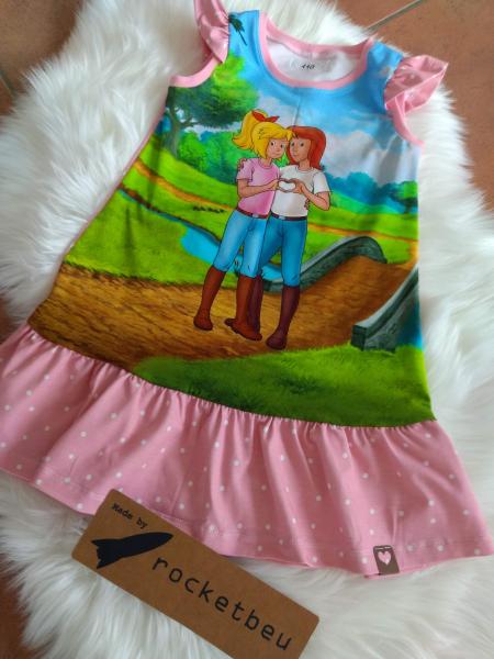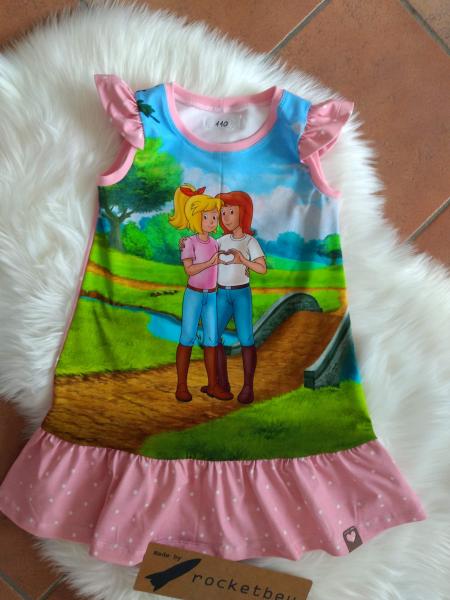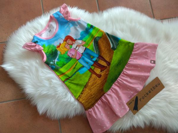 Ein tolles Trägerkleid mit Drehrock und Flügelärmelchen. Dieses tolle Kleid ist ein Begleiter für das ganze Jahr. Im Herbst und Winter kann man gut ein Langarmshirt unter ziehen und somit ist es das ganze Jahr tragbar. Auch wächst es gut mit. Am Anfang ist es ein Kleid, später dann eine Tunika.