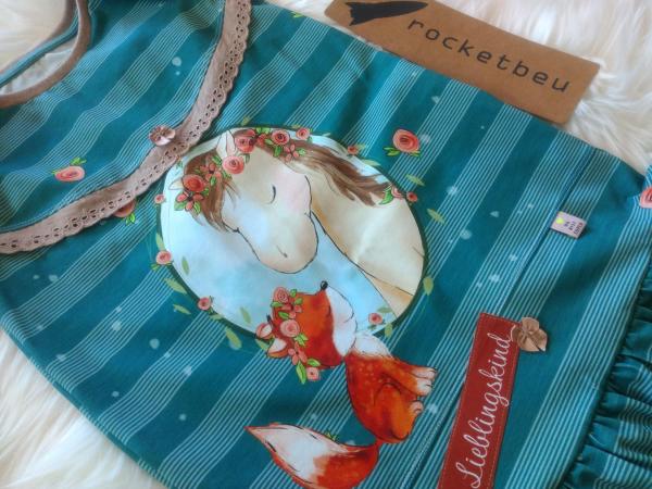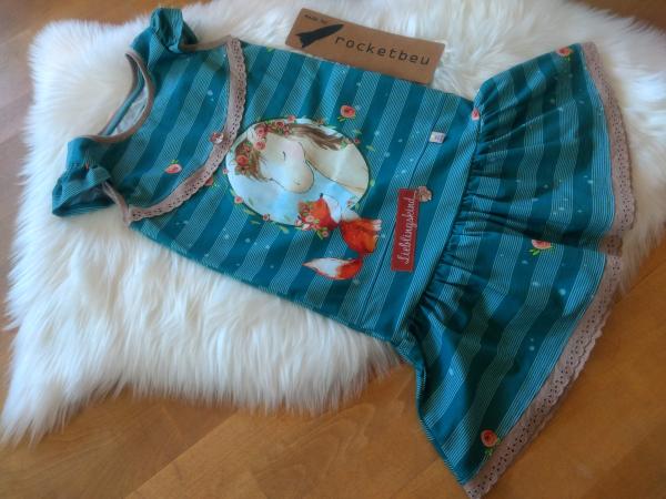 Ein tolles Trägerkleid mit Drehrock und Flügelärmelchen. Dieses tolle Kleid ist ein Begleiter für das ganze Jahr. Im Herbst und Winter kann man gut ein Langarmshirt unter ziehen und somit ist es das ganze Jahr tragbar. Auch wächst es gut mit. Am Anfang ist es ein Kleid, später dann eine Tunika.