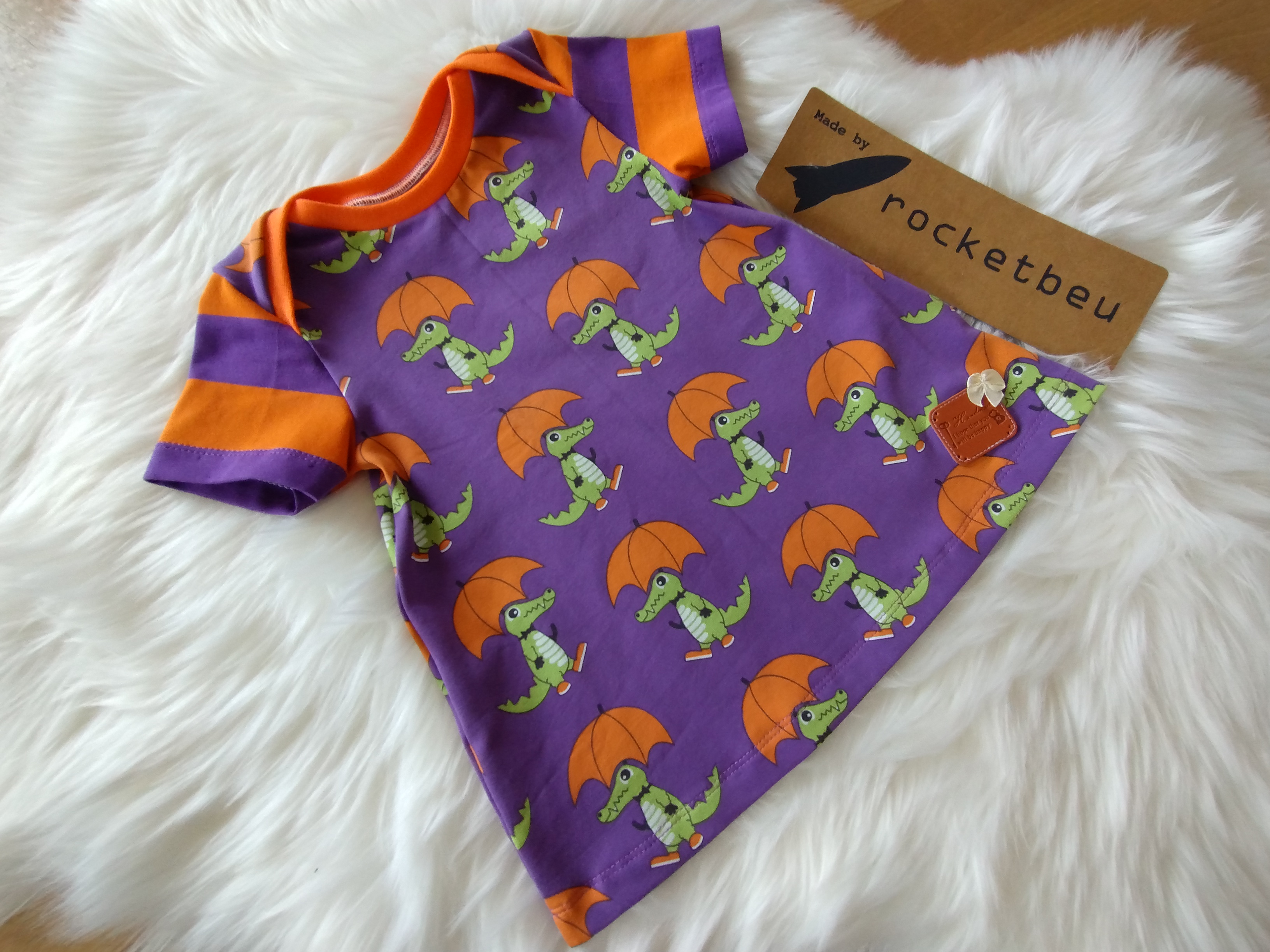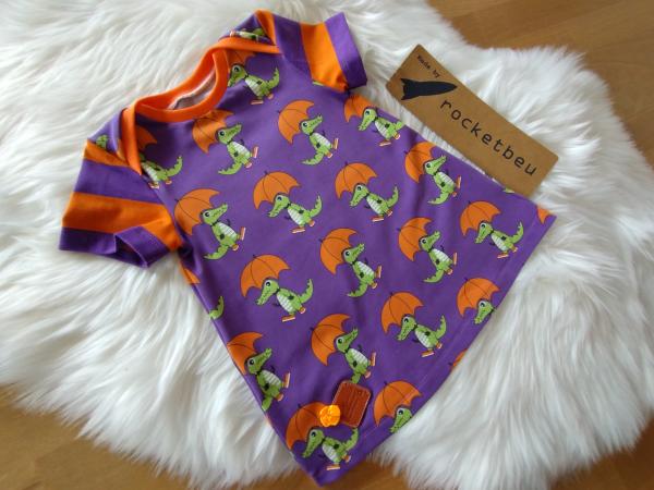 Eine tolle Tunika mit kurzen Armen, americanischem Ausschnitt und Krokodil-Motiv. Diese tolle Tunika ist ein Begleiter für das ganze Jahr. Im Herbst und Winter kann man gut ein Langarmshirt unter ziehen und somit ist es das ganze Jahr tragbar. Auch wächst sie lange gut mit.